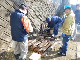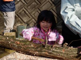 まず,しいたけの菌打ちをやります。