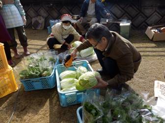 野菜市もやります。 石原さん値付け中