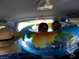 次の学習は?? 車の中の大浮き輪