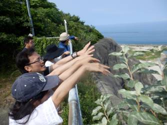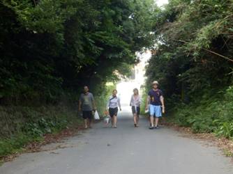 さあ,次の学習現場に向かいます。浜から寺本家への道です。