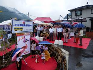 15分ほど様子を見て,雨の合間を縫って除幕式を開始しました。