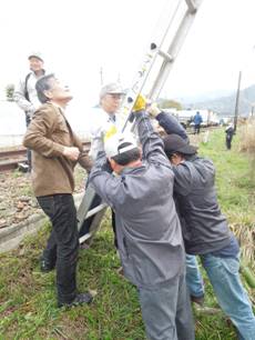 こういう高所作業は,可部山岳会会長の小林さんが