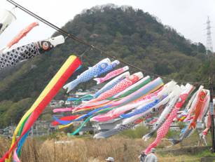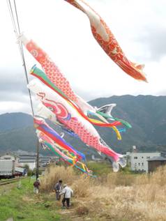 風が強く,鯉も真横になって泳ぎます。