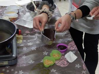 チョコを溶かしています。男子の仕事。