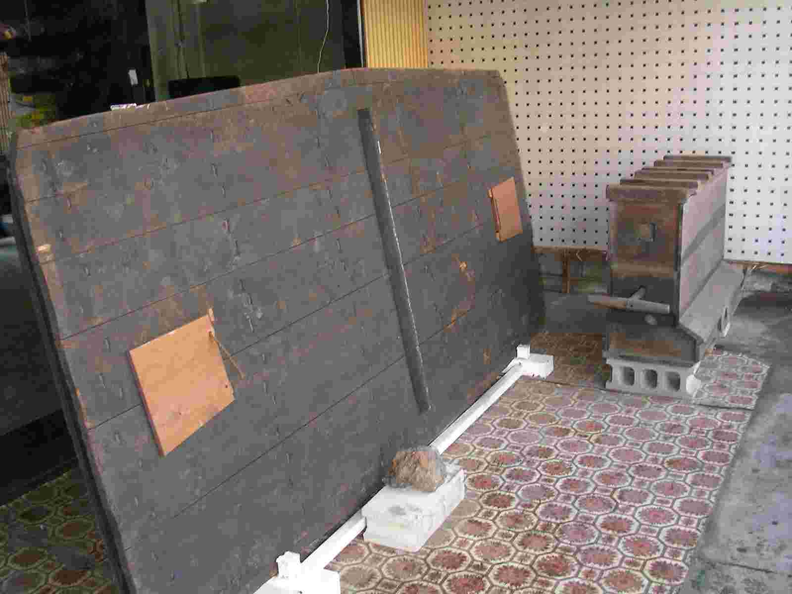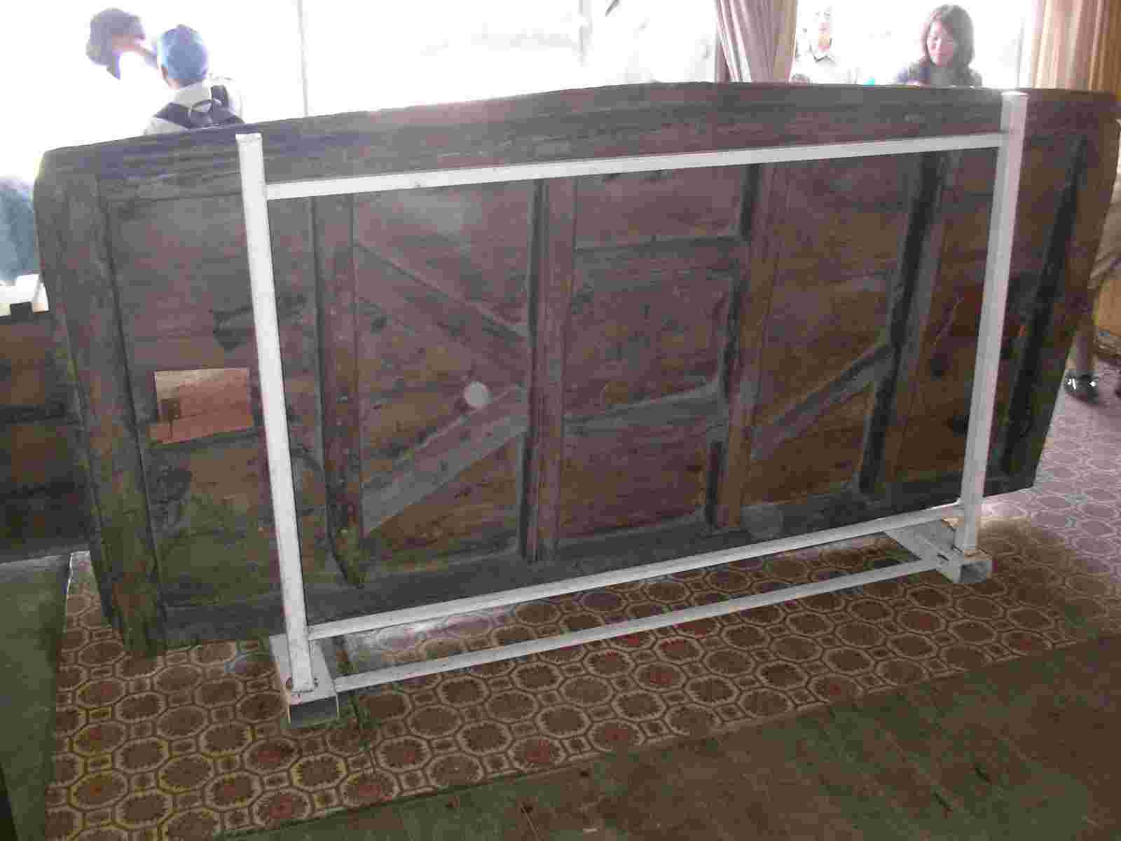 展示完了 左が踏み板 右がふいご 踏み板の裏側です