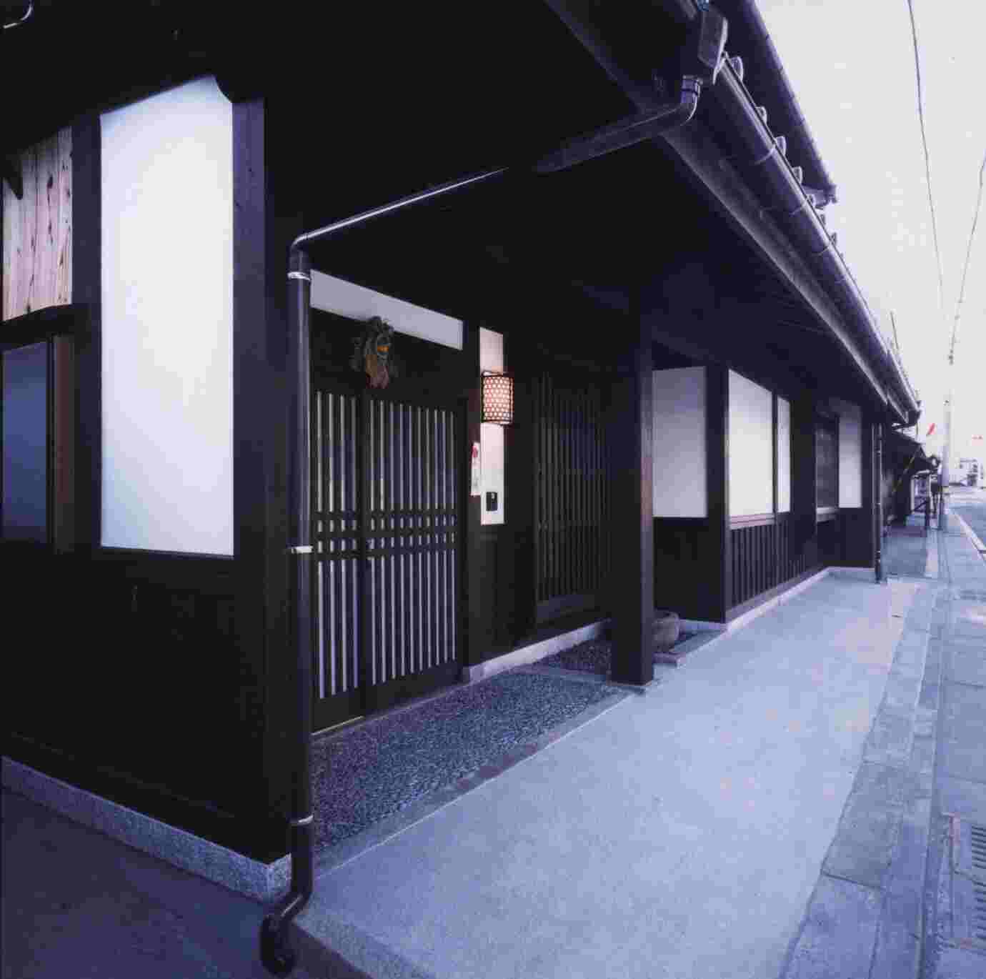 | 広島市北部、可部町の旧道に建つこの民家は、昭和2年(1927)に建築された。 当時は履物店、後に理髪店として 利用されてきたが、閉店を機に改築することになった。 この建物の両隣をはじめ周辺は明治、大正時代に建築され た民家が有り、町の歴史が感じられる地域である。しかし近年これらの家が減り、駐車場や現代的な建物に変わり つつある。 このたび施主の希望により、古来の意匠を踏襲しながら、近代の生活にふさわしい民家の再生をする ことになった。 実施設計に先立ち、内部の造作を取り払って調査したところ、建物内部(店舗部分)は2階を支 える柱が極端に少なく、また道路側の外部柱においては、その多くの根元が腐っており、強度が無くなって、2階 の道路側が下がっており、早急な補強対策が必要であった。 そこで、2階をジャッキで持ち上げておいて、1階の 柱の取替えや増設、スジカイの取付けなどの補強工事を行った。 既設の土台も、内外ともに腐れがひどかったので 全てを取り払い、既設の土間の上に鉄筋コンクリ−トでベ−スを作った後、長石を敷き、新しい土台を乗せ、柱を 建てた。 一方、内部の丸太梁と軒を支える大きな角梁は、先祖の遺産として残し意匠的な配慮をした。新しく取り つけた窓には格子を取付け、外壁は1、2階とも従来のシックイ塗りとしたが、2階のサッシュは既存のままと し、傷みがかなり進んでいた【うだつ】は修復した。 この結果、施主の希望を満足させる「民家の再生」が出来た。 工事期間 3、5ヶ月、工事費(電気、空調設備含む)は 86、500円/uであった。 (株式会社加納設計) |