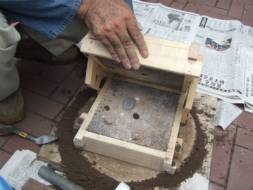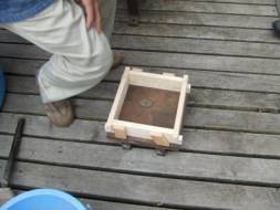 反対側の木枠分の砂を詰めていきます。