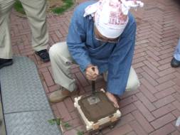 流し込みようの通路を作りながら,砂を固めていきます。