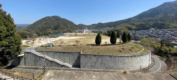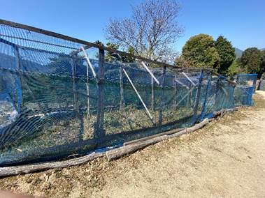 ヒバクアオギリ2世の苗木が植樹されています。鹿よけネット。