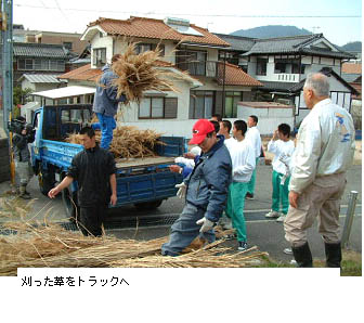 そこでカラスに出来ること、根の谷川流域で葦を刈り、広島まで運ぶことにしました。
