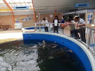 ウミガメのえさやり