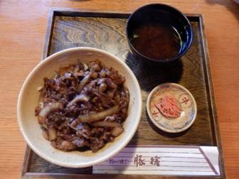 名物の牛丼で昼食です。畜産振興です。