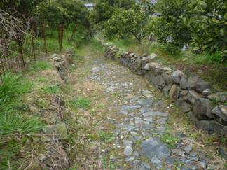 水路も石張り,みかん農家の皆さんが,共同で作られた産業遺産です。