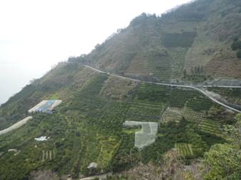 農家のみなさんは,この階段を何十キロのみかんを担いで下りるのです。