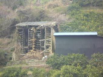 さらに上ると,岩盤の上に石を積んで作った,急傾斜狭小畑