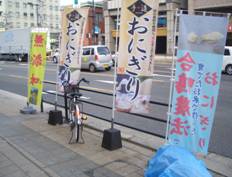 営業時間 10:00〜19:00、定休日 日曜、祝日。 おにぎりメニューは、塩110円、わかめ120円、梅140円、雑穀・高菜・ツナマヨ・塩鮭・昆布150円、カモねぎ160円、海老天・明太子・明太マヨ170円と豊富。 おにぎり以外には唐揚げ200円もある。近々、草野農園で栽培したお米・ベビーリーフも販売予定。 P説1 大阪のおにぎり店で修行も済ませ、「味も素材も腕にも自信があります」と話す店長の草野拓志さん P説2 道路沿いの幟が目印 P説3 たくさんのメニューがあります |