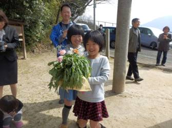 鍛谷兄妹から花束贈呈