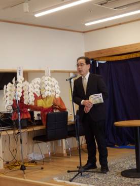 さあ。つづいて新縁が和竣工式典です。理事長挨拶
