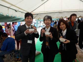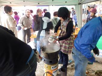 屋外では,いろんな屋台が出ています。豚汁美味。
