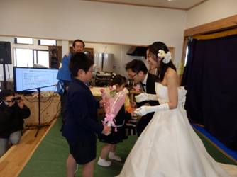 さあ,野菜のブーケトス いくよー ナイストス