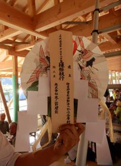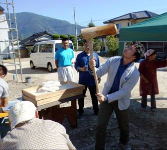 施主が最終の釘を打ちこみます。