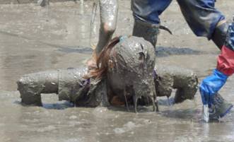 男性の部 ジャンプ台でスリップしてバランスを崩したところ