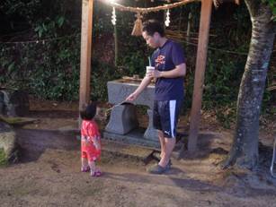 おてて洗って 今年は手洗い場もライトアップしました。