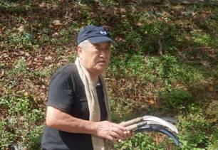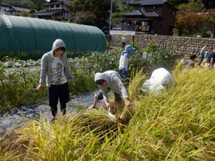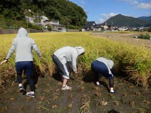 とはいっても,まずは稲刈りです。刈り方から学びます。