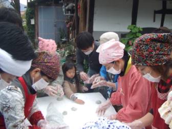 みんなで,こねます。青少協の皆さまに協力いただいております。