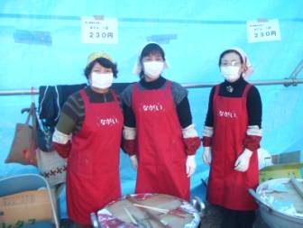 餅には長だの列です。右側が加計の鮎販売の屋台です。